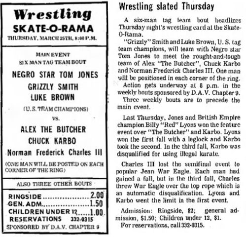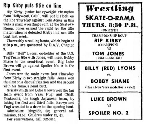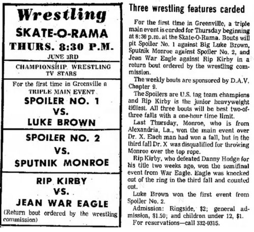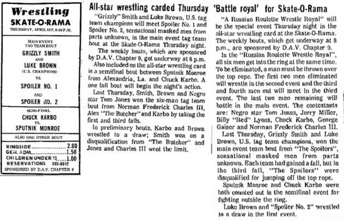 April 22, 1971 – Greenville, MS – Skate-O-Rama – NWA Tag Team Champs