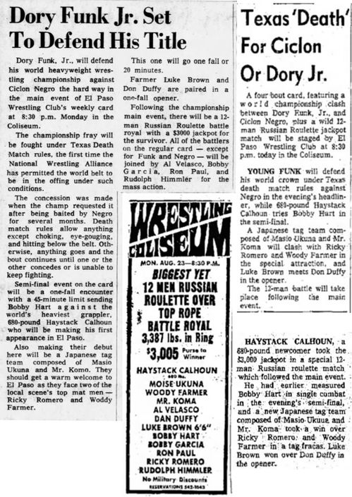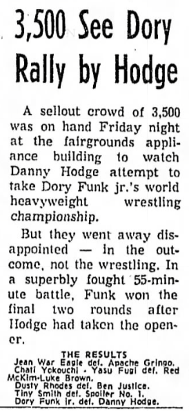 April 23, 1971 – Oklahoma City, OK – Fairgrounds Appliance Building – NWA Tag Team Champs