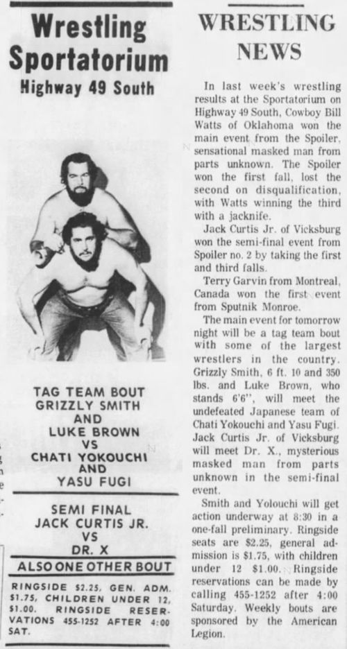 March 24, 1971 – Jackson, MS – State Fairgrounds – NWA Tag Team Champions