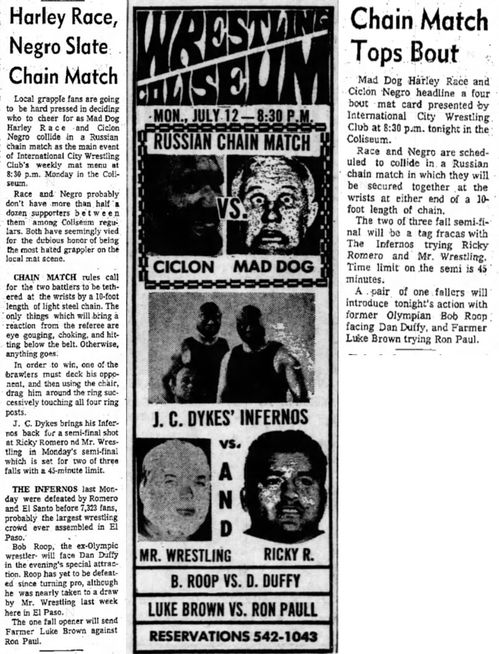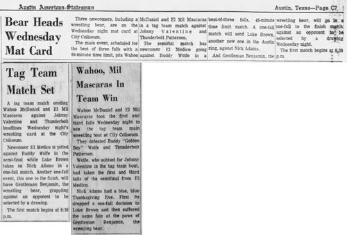 El Santo – Jose Lothario def Johnny Valentine – Thunderbolt Patterson