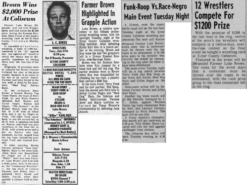 “And that team gets a chance at the new tag champions, “Tiny”Smith and Big Luke Brown here a week from tonight.”
