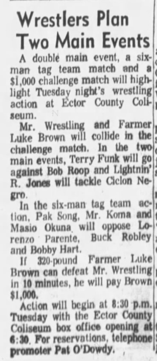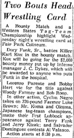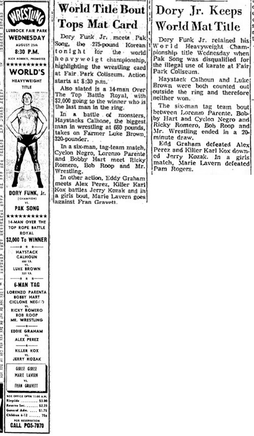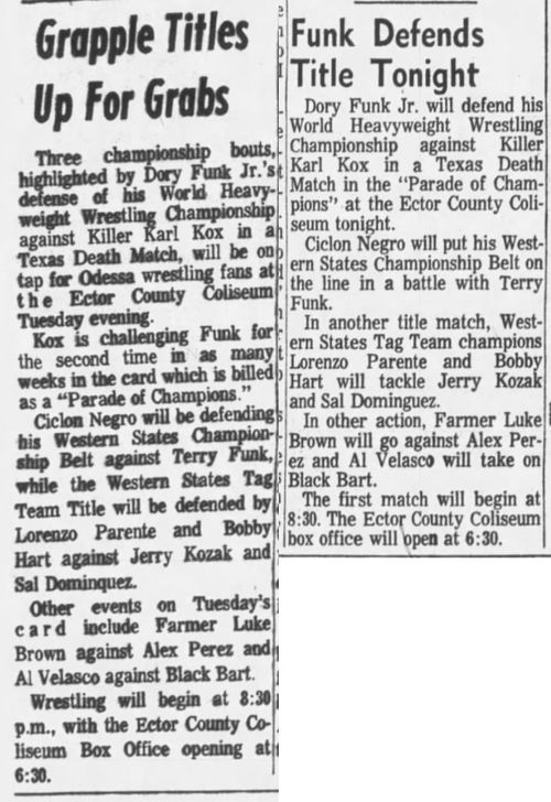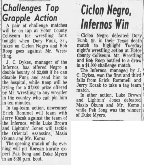 April 20, 1971 – Longview, TX – Gregg Country Fairgrounds – NWA Tag Team Champs