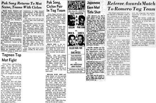 Dean Ho – Sabu Singh def Bronko Lubich – Joe Blanchard