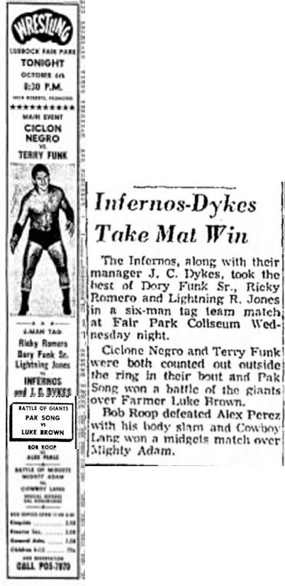 The Infernos def. Dory Funk Sr & Ricky Romero