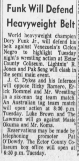 October 12, 1971 – Odessa, TX – Ector County Coliseum