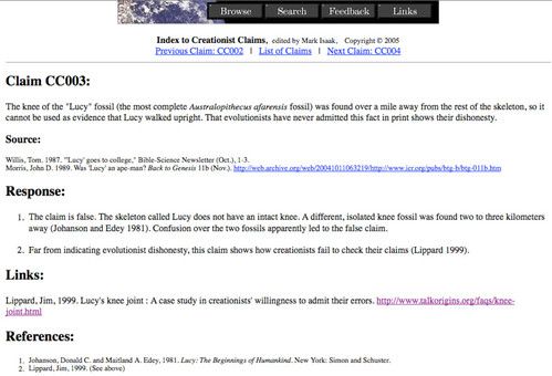 Please notice Response: 1. It states: “The claim is false. The skeleton called Lucy does not have an intact knee.” Emphasis mine!