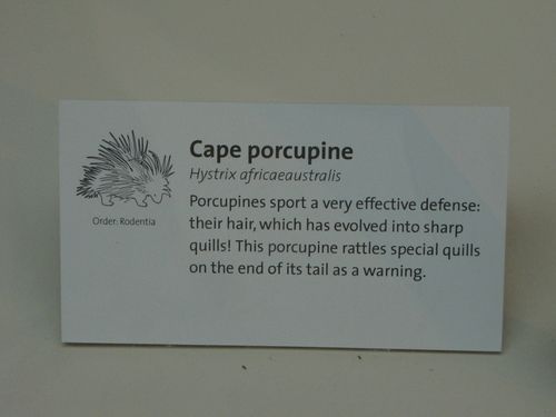 As we continued meandering through the carefully laid-out exhibits, we came upon a display with a stuffed porcupine. Foregoing the typical questions of the porcupine courtship process, the museum chose, instead, to focus on the evolution of the porcupine’s quills. According to the plaque accompanying the display, porcupine quills evolved from fur as an effective defensive measure.