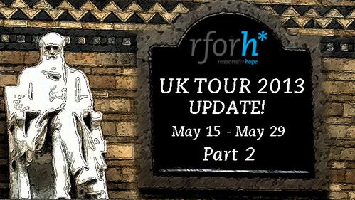 May 22nd – We went to the Manchester Museum of Natural History. I took a LOT of pictures and video, which I’ll be using in future talks. That night we were in Southport. What a meeting!! About 20 folks attended and I spoke on “10 Things a Christian Can Learn About Evangelism: From an Atheist!” We had a great Q & A afterward. This turned out to be one of the most special events of the whole tour even though it was probably one of the smallest attended. Perhaps because it was one of the most mature groups — there’s always wisdom and insight that comes with age.