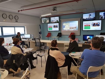 This organization built this structure to invite regular citizens, often from other countries, into an environment that Israel deals with every day. The goal is to show just how strategic they must be to survive. Admittedly, this was a completely foreign concept to someone like me who lives in the utmost safety of the United States of America. However, seeing what they deal with daily was nothing short of eye-opening. I so wish every person could experience this as I did to gain a proper understanding of what Israel faces. (The red circular area on the map below shows the surveillance area we were seeing on the screens.)