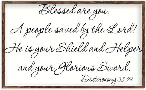 “Blessed are you, Israel! Who is like you, a people saved by the Lord? He is your shield and helper and your glorious sword. Your enemies will cower before you, and you will tread on their heights.”